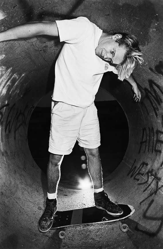 Portrait of Chris Miller by Grant Brittain, 1987 at Upland's pipeline Skatepark.